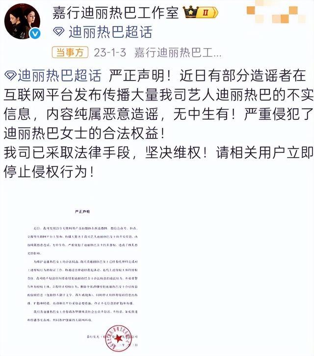 面对无稽之谈,迪丽热巴方更是坐不住。