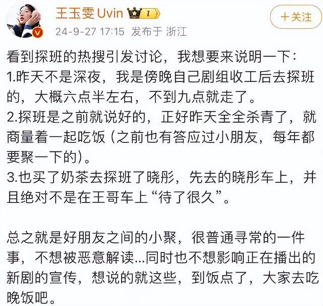 当天傍晚收工后前去探班,不到九点就离开,还特意买了奶茶探望其他演员。